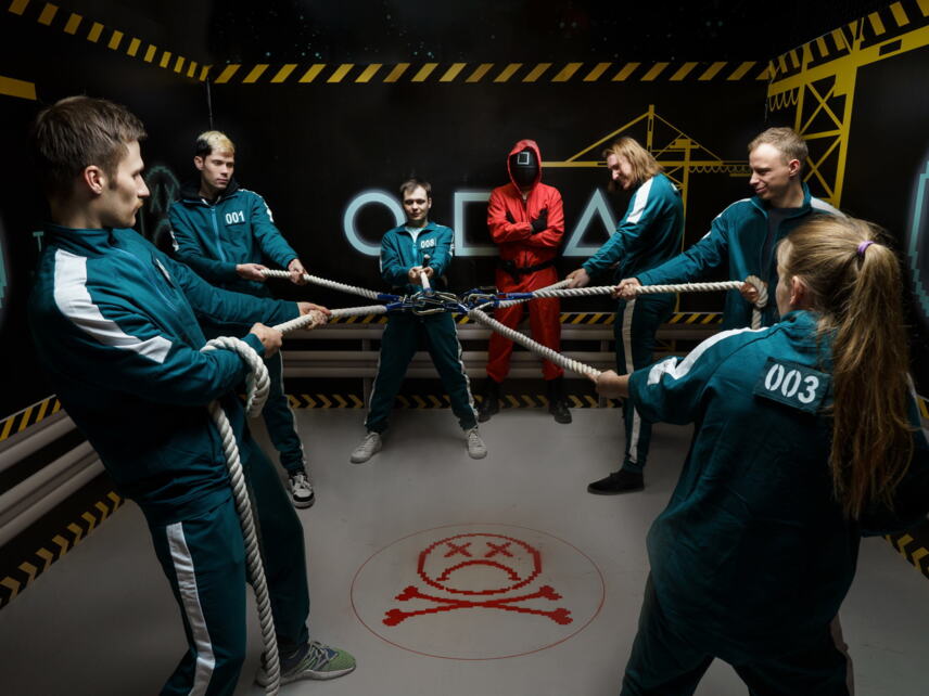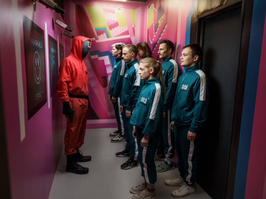 Вы просыпаетесь и обнаруживаете вокруг себя незнакомых людей и вооруженных охранников в розовых комбинезонах с квадратами на масках. Это был не сон. Игра началась! Вы должны выжить любой ценой.Возрастные ограничения: от 10 лет и старше (минимальный возраст 8 лет в сопровождении взрослого) [5]